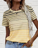 SPECIFICATIONS Top Type: T-shirt Style: Casual Material: Cotton Blends Occasion: Daily Neckline: Round Neck Pattern Type: Striped Sleeve Type: Regular sleeve Sleeve Length: Short Sleeve Fit Type: Regular Season: Spring,Summer Package Includes: 1 x T-shirt SIZE TABLE Size Bust Length CM INCH CM INCH S 97 38.19 65 25.59 M 101 39...