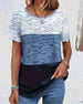 Round Neck Short Sleeve Contrast Color T-Shirt