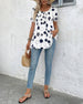 SPECIFICATIONS Top Type: Blouses Style: Casual Material: Cotton Blends Occasion: Daily Neckline: Round Neck Pattern Type: Polka Dot,Print Sleeve Length: Short Sleeve Fit Type: Regular Season: Spring,Summer Details: Buckle Package Includes: 1 x Blouse SIZE TABLE Size Bust Length CM INCH CM INCH S 97 38.19 65 25.59 M 101 39.7...