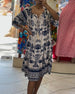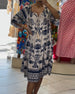 SPECIFICATIONS Style: Casual Material: Cotton Blends Dress Type: Shift dress Dress Length: Knee Length Neckline: Round Neck Pattern Type: Tribal Print Sleeve Type: Flare Sleeve Sleeve Length: Half Sleeve Details: Drawstring Fit Type: Loose Season: Spring,Summer Occasion: Daily Package Includes: 1 x Dress SIZE TABLE Size Bust Leng...