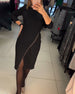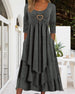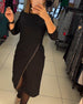 SPECIFICATIONS Style: Casual, Chic Material: Cotton Blends Dress Type: Wrap Dress Length: Knee Length Neckline: Round Neck Pattern Type: Solid Color Sleeve Type: Regular sleeve Sleeve Length: Long Sleeve Details: Slit Fit Type: Regular Season: Fall, Winter Occasion: Daily Package Includes: 1 x Dress SIZE TABLE Size Bust Length CM INCH...