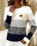 SPECIFICATIONS Top Type: Tops Style: Casual Material: Cotton Blends Occasion: Daily Neckline: Round Neck Pattern Type: Striped Sleeve Type: Regular sleeve Sleeve Length: Long Sleeve Fit Type: Regular Season: Fall,Winter Package Includes: 1 x Top SIZE TABLE Size Bust Length CM INCH CM INCH S 97 38.19 65 25.59 M 101 39.76 66.5 2...