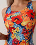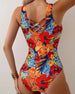 Round Neck Wide Strap Floral One-Piece Swimsuit