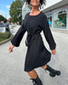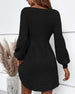 SPECIFICATIONS Style: Casual Material: Cotton Blends Dress Type: A-Line Dress Length: Knee Length Neckline: Round Neck Pattern Type: Solid Color Sleeve Type: Lantern Sleeve Sleeve Length: Long Sleeve Details: Pocket, Lace Up Fit Type: Regular Season: Spring, Fall, Winter Occasion: Daily Package Includes: 1 x Dress (With Belt) SIZE TABLE ...