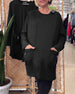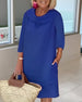 SPECIFICATIONS Style: Elegant Material: Cotton Blends Dress Type: Shift dress Dress Length: Knee Length Neckline: Round Neck Pattern Type: Solid Color Sleeve Type: Dropped shoulder Sleeve Length: Long Sleeve Details: Pocket Fit Type: Regular Season: Spring, Fall, Winter Occasion: Daily Package Includes: 1 x Dress SIZE TABLE Size...