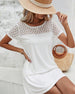 SPECIFICATIONS Style: Elegant Material: Cotton Blends Dress Type: A-Line Dress Length: Knee Length Neckline: Round Neck Pattern Type: Solid Color Sleeve Type: Regular sleeve Sleeve Length: Short Sleeve Details: Lace Fit Type: Regular Season: Spring, Summer Occasion: Daily, Vacation Package Includes: 1 x Dress SIZE TABLE Size Bust Leng...