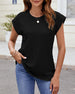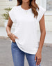 SPECIFICATIONS Top Type: T-shirt Style: Casual Material: Cotton Blends Occasion: Daily Neckline: Round Neck Pattern Type: Solid Color Sleeve Type: Regular sleeve Sleeve Length: Short Sleeve Fit Type: Regular Season: Spring, Summer, Fall Details: Shirred Package Includes: 1 x T-shirt SIZE TABLE Size Bust Length cm inch cm inch...