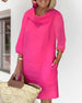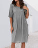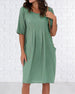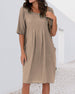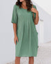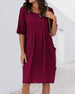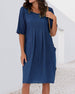 SPECIFICATIONS Style: Casual Material: Cotton, Polyester Dress Type: Shift dress Dress Length: Knee Length Neckline: Round Neck Pattern Type: Solid Color Sleeve Type: Regular sleeve Sleeve Length: Nine Points Sleeve Details: Pocket Fit Type: Regular Season: Spring, Summer, Fall Occasion: Daily Package Includes: 1 x Dress SIZE TABLE ...