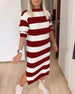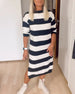 SPECIFICATIONS Style: Casual Material: 5% Spandex, 95% Polyester Dress Type: Shift dress Dress Length: Midi Neckline: Round Neck Pattern Type: Striped Sleeve Type: Regular sleeve Sleeve Length: Long Sleeve Details: Slit Fit Type: Regular Season: Spring, Fall, Winter Occasion: Daily Package Includes: 1 x Dress SIZE TABLE Size Bu...