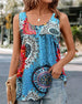 SPECIFICATIONS Top Type: Tank Top Style: Casual Material: Cotton Blends Occasion: Daily Neckline: Round Neck Pattern Type: Floral, Geometric Print, Print Sleeve Length: Sleeveless Fit Type: Regular Season: Spring, Summer Details: Buttons Package Includes: 1 x Tank Top SIZE TABLE (cm) Size Bust Length Waist cm inch cm inch c...