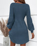 SPECIFICATIONS Style: Casual, Chic, Business Material: 41% Acrylic, 30% Chinlon, 29% Polyester Dress Type: A-Line Dress Length: Knee Length Neckline: Round Neck Pattern Type: Solid Color Sleeve Type: Lantern Sleeve Sleeve Length: Long Sleeve Fit Type: Regular Season: Spring, Fall, Winter Occasion: Daily Package Includes: 1 x Dress SIZE TA...