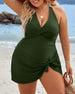 SPECIFICATIONS Style: Vacation Material: 82% Chinlon,18% Spandex Occasion: Vacation Neckline: V neck_V Pattern Type: Solid Color Sleeve Length: Sleeveless Top Type: Swimdress Bra Type: Wireless Bra Fit Type: Skinny Details: Knot Package Includes: 1 x Swimdress SIZE TABLE Size Bust Waist Hip Under bust CM INCH CM INCH CM INCH CM INCH S 88...