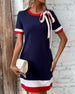 Short Sleeve Contrast Tie Dress