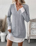 Shirt-Collar Fake Two-Piece Knit Dress