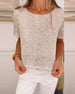 SPECIFICATIONS Top Type: Blouses Style: Casual Material: Cotton Blends Occasion: Daily Neckline: Round Neck Pattern Type: Sequin Sleeve Type: Regular sleeve Sleeve Length: Short Sleeve Fit Type: Regular Season: Summer Package Includes: 1 x Blouse SIZE TABLE Size Bust Length CM INCH CM INCH S 95 37.40 65 25.5...