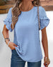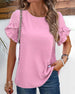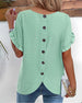 SPECIFICATIONS Top Type: Tops Style: Casual Material: 100% Polyester Occasion: Daily, Vacation Neckline: Round Neck Pattern Type: Print Sleeve Type: Ruffle Sleeve Sleeve Length: Short Sleeve Fit Type: Regular Season: Spring, Summer Details: Buttons Package Includes: 1 x Top SIZE TABLE Size Bust Length Sleeves Shoulder CM INCH CM IN...