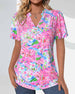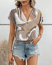 SPECIFICATIONS Top Type: Blouses Style: Casual Material: 5% Spandex, 95% Polyester Occasion: Daily, Vacation Neckline: V neck_V Pattern Type: Print Sleeve Type: Regular sleeve Sleeve Length: Short Sleeve Fit Type: Regular Season: Spring, Summer Package Includes: 1 x Blouse SIZE TABLE Size Bust Length Sleeves Shoulder CM INCH CM I...