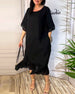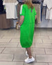 SPECIFICATIONS Style: Elegant Material: Cotton Blends Dress Type: A-Line Dress Length: Midi Neckline: Round Neck Pattern Type: Solid Color Sleeve Type: Regular sleeve Sleeve Length: Half Sleeve Fit Type: Regular Season: Spring, Summer, Fall Occasion: Daily Package Includes: 1 x Dress SIZE TABLE Size Bust Length CM INCH CM INCH S 9...