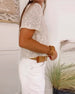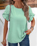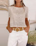 SPECIFICATIONS Top Type: Tops Style: Elegant Material: Cotton Blends, Lace Occasion: Daily Neckline: V neck_V Pattern Type: Solid Color Sleeve Type: Regular sleeve Sleeve Length: Short Sleeve Fit Type: Regular Season: Spring, Summer, Fall Details: Patchwork Package Includes: 1 x Top SIZE TABLE Size Bust Length CM INCH...