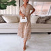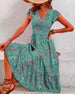 SPECIFICATIONS Style: Casual Material: 3% Spandex,97% Polyester Dress Type: A-Line Dress Length: Midi Neckline: V neck_V Pattern Type: Print Sleeve Type: Regular sleeve Sleeve Length: Short Sleeve Details: Shirred Fit Type: Regular Season: Summer Occasion: Daily Package Includes: 1 x Dress SIZE TABLE Size Bust Length Shoulder CM IN...