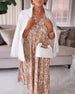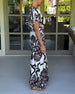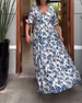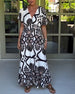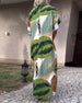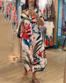 SPECIFICATIONS Style: Casual, Vacation Material: Cotton Blends Dress Type: Shift dress Dress Length: Maxi Neckline: V neck_V Pattern Type: Leaves, Print Sleeve Type: Dropped shoulder Sleeve Length: Short Sleeve Details: Slit Fit Type: Regular Season: Summer Occasion: Daily, Vacation Package Includes: 1 x Dress SIZE TABLE Size Bus...