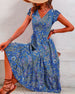 SPECIFICATIONS Style: Casual Material: Cotton Blends Dress Type: A-Line Dress Length: Maxi Neckline: V neck_V Pattern Type: Print Sleeve Type: Regular sleeve Sleeve Length: Short Sleeve Details: Lace Up,Shirred Fit Type: Regular Season: Spring,Summer Occasion: Daily Package Includes: 1 x Dress SIZE TABLE Size Bust Length CM INCH CM INCH...