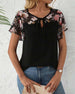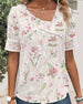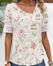 SPECIFICATIONS Top Type: Tops Style: Casual Material: Cotton Blends Occasion: Daily, Vacation Neckline: V neck_V Pattern Type: Floral Sleeve Type: Regular sleeve Sleeve Length: Short Sleeve Fit Type: Regular Season: Spring, Summer Details: Lace Package Includes: 1 x Top SIZE TABLE Size Bust Length CM INCH CM INCH S 95 37.40 65 25.59...