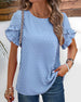 SPECIFICATIONS Top Type: Blouses Style: Casual Material: Cotton Blends Occasion: Daily Neckline: Round Neck Pattern Type: Print Sleeve Type: Regular sleeve Sleeve Length: Short Sleeve Fit Type: Regular Season: Spring,Summer Details: Hollow Out Package Includes: 1 x Blouse SIZE TABLE Size Bust Length CM INCH CM INCH S 97 38.19 65...