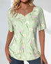 SPECIFICATIONS Top Type: Tops Style: Casual Material: Cotton Blends Occasion: Daily, Vacation Neckline: V neck_V Pattern Type: Floral Sleeve Type: Regular sleeve Sleeve Length: Short Sleeve Fit Type: Regular Season: Spring, Summer Package Includes: 1 x Top SIZE TABLE Size Bust Length CM INCH CM INCH S 95 37.40 68 26.77 M 100 39.37...