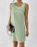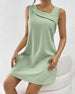 SPECIFICATIONS Style: Casual Material: Cotton Blends Dress Type: A-Line Dress Length: Knee Length Neckline: Slant Collar Pattern Type: Solid Color Sleeve Length: Sleeveless Fit Type: Regular Season: Spring,Summer Occasion: Daily Package Includes: 1 x Dress SIZE TABLE Size Bust Length CM INCH CM INCH S 97 38.19 100 39.37 M 101 3...