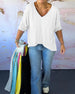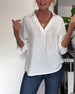 SPECIFICATIONS Top Type: Tops Style: Elegant,Business Material: Cotton Blends Occasion: Daily,Work Neckline: V neck_V Pattern Type: Solid Color Sleeve Type: Regular sleeve Sleeve Length: Short Sleeve Fit Type: Regular Season: Spring,Summer,Fall Details: Buttons,Shirred Package Includes: 1 x Top SIZE TABLE Size Bust Length CM INCH C...