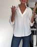 SPECIFICATIONS Top Type: Tops Style: Elegant Material: 95% Polyester, 5% Spandex Occasion: Daily Neckline: V neck_V Pattern Type: Solid Color Sleeve Type: Regular sleeve Sleeve Length: Long Sleeve Fit Type: Regular Season: Spring,Fall,Winter Package Includes: 1 x Top SIZE TABLE Size Bust Length Sleeves Shoulder CM INCH CM INCH CM INCH...