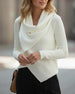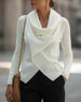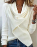 SPECIFICATIONS Top Type: Tops Style: Chic Material: Knit Occasion: Daily Neckline: Draped Collar Pattern Type: Solid Color Sleeve Type: Raglan sleeve Sleeve Length: Long Sleeve Fit Type: Regular Season: Fall,Winter Details: Irregular Package Includes: 1 x Top SIZE TABLE Size Bust Length CM INCH CM INCH S 97 38.19 65 25.59 M 10...