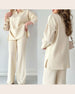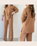 SPECIFICATIONS Style: Casual Top Type: sweater Category: Pullovers Material: Acrylic,Polyester Pattern Type: Solid Color Neckline: Lapel Sleeve Type: Dropped shoulder Sleeve Length: Long Sleeve Pants Type: Wide Leg Pants Length: Long Waist Type: Mid Waist Fit Type: Loose Season: Spring,Fall,Winter Details: Pocket Occasion: Daily Package Includ...