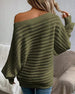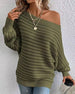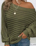 SPECIFICATIONS Category: Pullovers Style: Casual Material: Acrylic,Spandex,Polyester Neckline: Off Shoulder Pattern Type: Solid color Sleeve Type: Bat sleeve Sleeve Length: Long Sleeve Details: Ribbed Fit Type: Regular Occasion: Daily Season: Spring,Fall,Winter Package Includes: 1 x Pullover SIZE TABLE Size Bust Length CM INCH CM I...