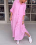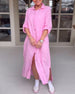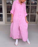 SPECIFICATIONS Style: Casual Material: Cotton and linen Dress Type: Shirt Dress Length: Maxi Neckline: Lapel Pattern Type: Solid Color Sleeve Type: Regular sleeve Sleeve Length: Long Sleeve Details: Buttons, Slit Fit Type: Regular Season: Spring, Summer, Fall Occasion: Daily Package Includes: 1 x Dress SIZE TABLE Size Bust ...
