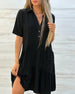 SPECIFICATIONS Style: Casual Material: Cotton and linen Dress Type: A-Line Dress Length: Above-knee Neckline: Lapel Pattern Type: Solid Color Sleeve Type: Regular sleeve Sleeve Length: Short Sleeve Details: Patchwork, Buttons Fit Type: Regular Season: Spring, Summer, Fall Occasion: Daily Package Includes: 1 x Dress SIZE TABLE Size B...
