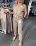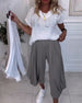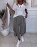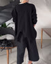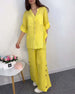SPECIFICATIONS Style: Casual Top Type: Blouses Category: Sets Material: Cotton Blends Pattern Type: Solid Color Neckline: V neck_V Sleeve Type: Regular sleeve Sleeve Length: 3/4 Sleeve Pants Type: Wide Leg Pants Length: Long Waist Type: Mid Waist Fit Type: Regular Season: Spring, Summer, Fall Details: Pocket, Buttons Occasion: Daily Package In...