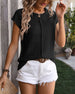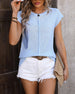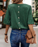 SPECIFICATIONS Top Type: Tops Style: Elegant, Business Material: Cotton Blends Occasion: Daily, Work Neckline: Round Neck Pattern Type: Solid Color Sleeve Type: Flare Sleeve Sleeve Length: Half Sleeve Fit Type: Regular Season: Spring, Summer, Fall Details: Patchwork, Buttons Package Includes: 1 x Top SIZE TABLE Size Bust Length ...