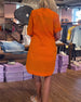 SPECIFICATIONS Style: Casual Material: Cotton Blends Dress Type: Shift dress Dress Length: Above-knee Neckline: V neck_V Pattern Type: Solid Color Sleeve Type: Regular sleeve Sleeve Length: 3/4 Sleeve Details: Pocket, Buttons Fit Type: Regular Season: Spring, Summer Occasion: Daily Package Includes: 1 x Dress SIZE TABLE Size Bust Le...