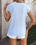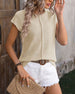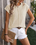 SPECIFICATIONS Top Type: Tops Style: Casual, Vacation Material: 5% Polyester,95% Cotton and linen Occasion: Daily, Vacation Neckline: Round Neck Pattern Type: Solid Color Sleeve Type: Regular sleeve Sleeve Length: Short Sleeve Fit Type: Regular Season: Spring, Summer, Fall Details: Buttons Package Includes: 1 x Top SIZE TABLE (cm) S...