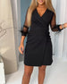 V-Neck Fitted Waist Slit Dress