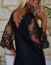 SPECIFICATIONS Style: Casual Material: Cotton Blends Dress Type: Shift dress Dress Length: Maxi Neckline: V neck_V Pattern Type: Solid Color Sleeve Type: Regular sleeve Sleeve Length: 3/4 Sleeve Details: Hollow Out,Lace Fit Type: Loose Season: Fall,Winter Occasion: Daily Package Includes: 1 x Dress SIZE TABLE Size Bust Length CM I...