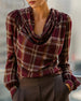 SPECIFICATIONS Top Type: Tops Style: Casual Material: Cotton Blends Occasion: Daily Neckline: Draped Collar Pattern Type: Plaid Sleeve Type: Regular sleeve Sleeve Length: Long Sleeve Fit Type: Regular Season: Fall,Winter Package Includes: 1 x Top SIZE TABLE Size Bust Length CM INCH CM INCH S 97 38.19 65 25.59 M 101 39.76 66.5 ...