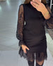 SPECIFICATIONS Style: Chic Material: Cotton Blends,Mesh,Plush Dress Length: Above-knee Neckline: V neck_V Pattern Type: Solid Color Sleeve Type: Regular sleeve Sleeve Length: Nine Points Sleeve Details: See-through Fit Type: Regular Season: Fall,Winter Occasion: Work,Party Package Includes: 1 x Dress SIZE TABLE Size Bust Length CM...