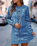 SPECIFICATIONS Style: Casual Material: Cotton Blends Dress Type: Shift dress Dress Length: Above-knee Neckline: Round Neck Sleeve Type: Regular sleeve Sleeve Length: Long Sleeve Fit Type: Regular Season: Fall,Winter Occasion: Daily Package Includes: 1 x Dress SIZE TABLE Size Bust Length CM INCH CM INCH S 92 36.22 83 32.68 M ...