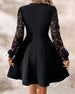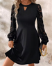 SPECIFICATIONS Style: Chic Material: Lace,Knit Dress Type: A-Line Dress Length: Above-knee Neckline: Round Neck Sleeve Type: Puff Sleeve Sleeve Length: Long Sleeve Details: Patchwork,Cut Out Fit Type: Regular Season: Fall,Winter Occasion: Daily Package Includes: 1 x Dress SIZE TABLE Size Bust Length CM INCH CM INCH S 97 38.19 86 33....