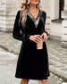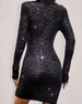 SPECIFICATIONS Style: Chic Material: Sequins,Velvet Dress Type: A-Line Dress Length: Knee Length Neckline: V neck_V Pattern Type: Sequin Sleeve Type: Cold Shoulder Sleeve Length: Long Sleeve Details: Patchwork Fit Type: Regular Season: Fall,Winter Occasion: Daily,Party Package Includes: 1 x Dress SIZE TABLE Size Bust Length CM INCH...