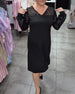 SPECIFICATIONS Style: Casual Material: Cotton Blends,Lace Dress Type: Bodycon Dress Length: Above-knee Pattern Type: Solid Color Sleeve Type: Flare Sleeve Sleeve Length: Long Sleeve Fit Type: Regular Season: Fall,Winter Occasion: Daily Package Includes: 1 x Dress SIZE TABLE Size Bust Length CM INCH CM INCH S 97 38.19 95 37.40 M 101 ...