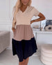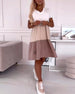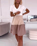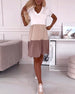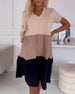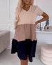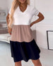 SPECIFICATIONS Style: Casual Material: 94% Polyester, 6% Spandex Dress Type: A-Line Dress Length: Knee Length Neckline: V neck_V Pattern Type: Color Block Sleeve Type: Regular sleeve Sleeve Length: Short Sleeve Details: Patchwork Fit Type: Regular Season: Summer Occasion: Daily Package Includes: 1 x Dress SIZE TABLE Size Bust Leng...